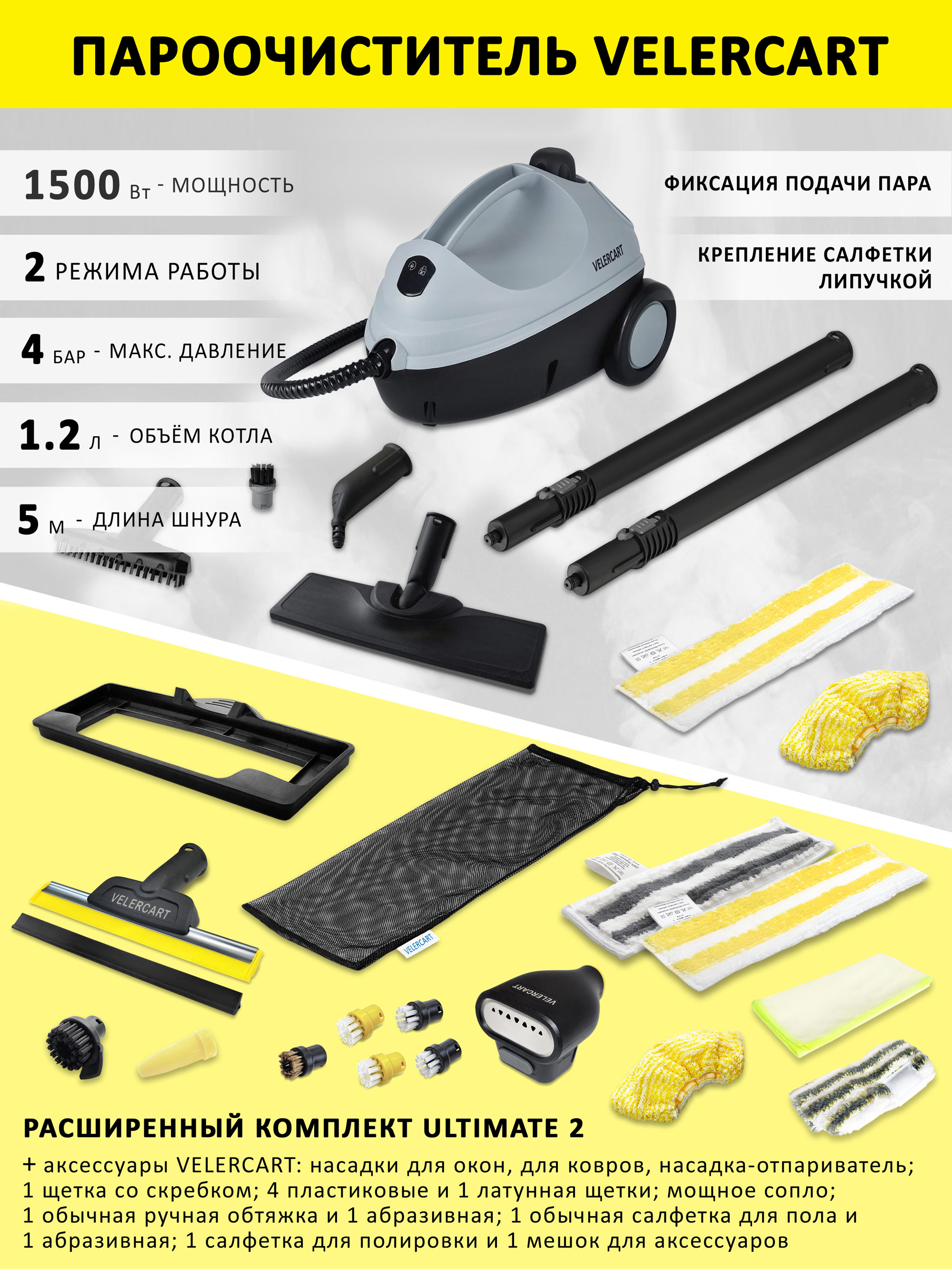 Пароочиститель для дома VELERCART V2, 4 бар, расширенный комплект Ultimate 2 (с насадкой-отпаривателем)