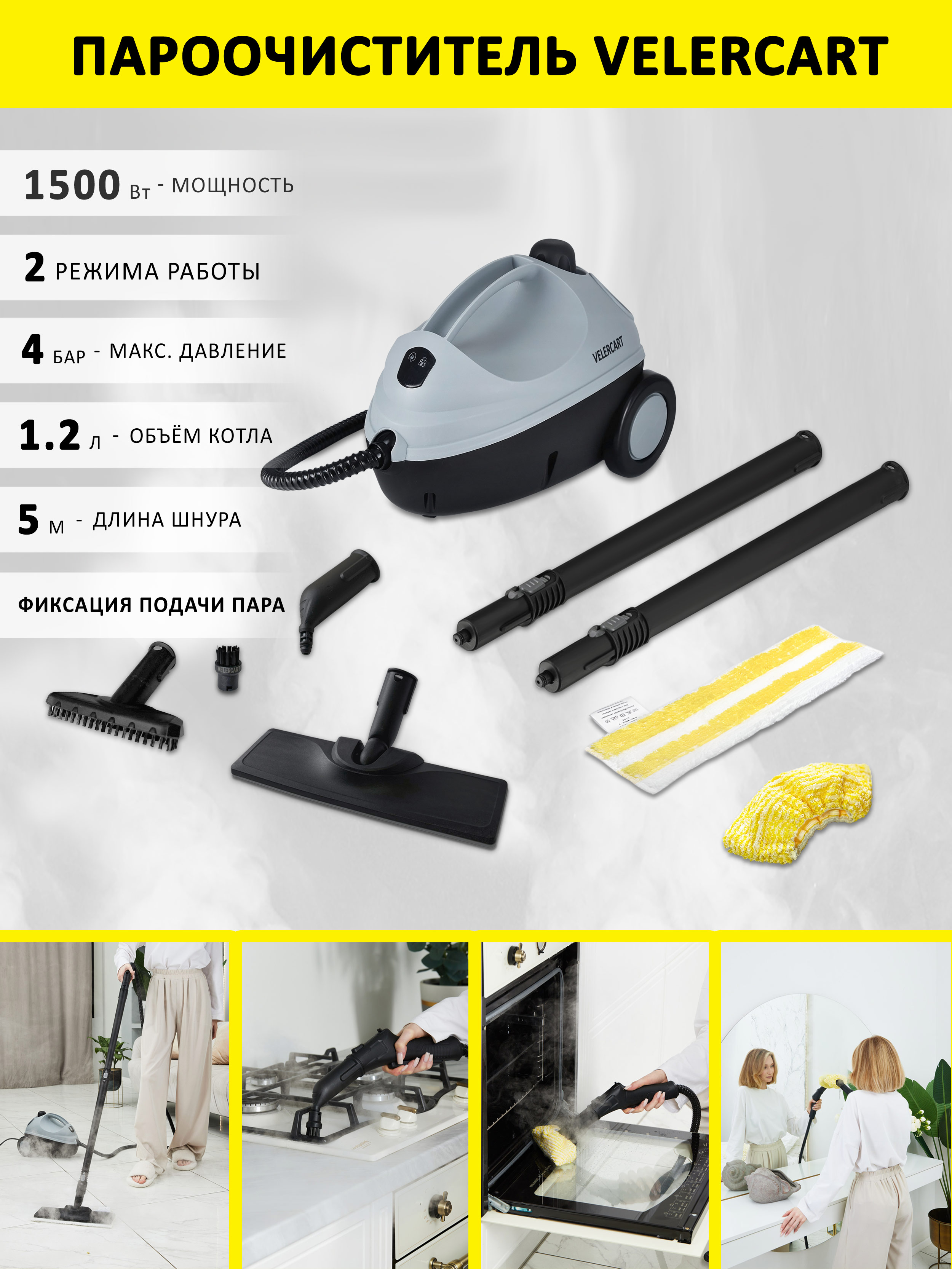Пароочиститель VELERCART V2 обеспечивает уборку без применения бытовой химии и имеет универсальные возможности. Аппарат выдаёт горячий пар под давлением в 4 бара и при тщательной уборке твердых поверхностей уничтожаются до 99,99% всех распространенных в быту бактерий.