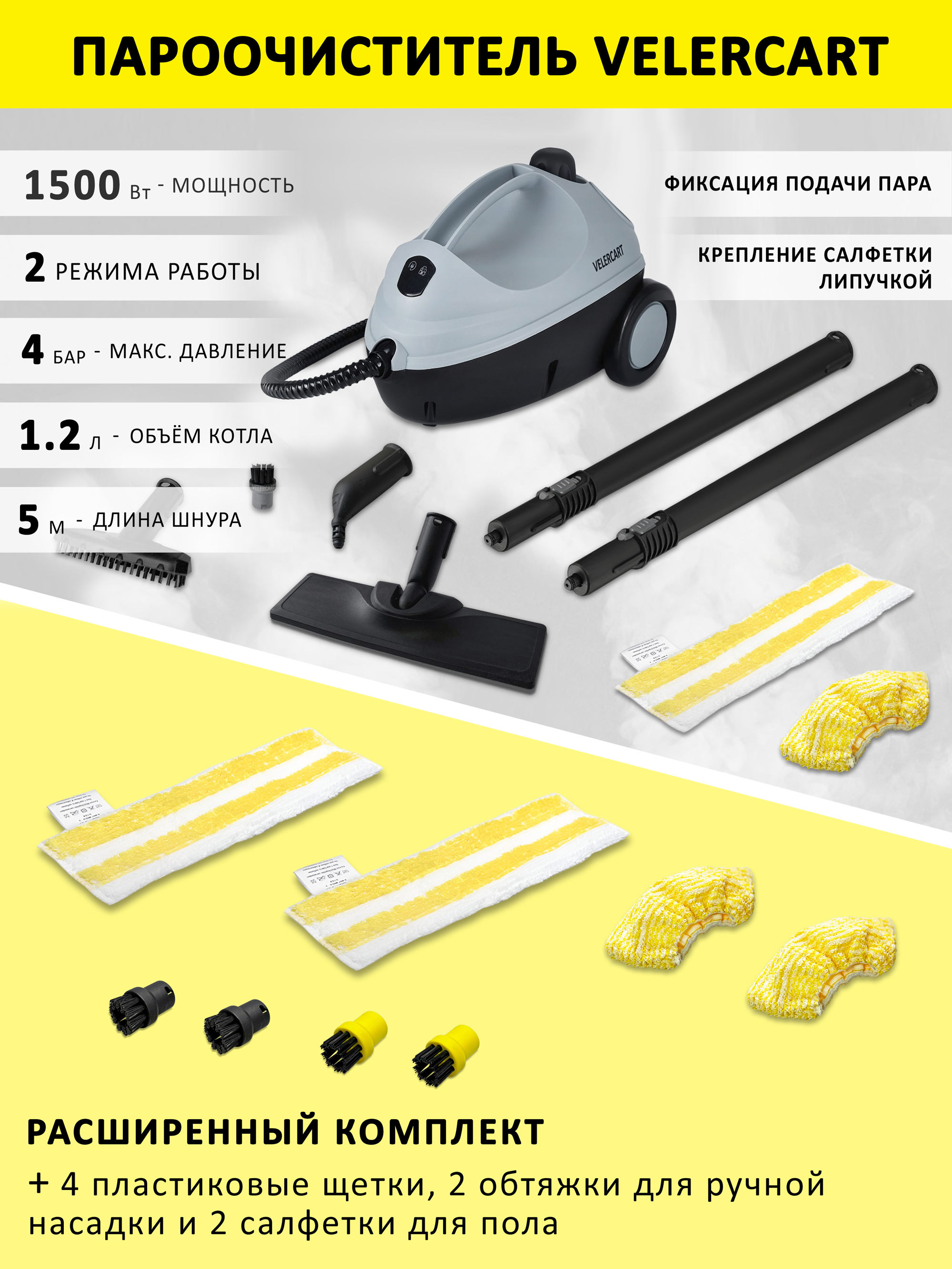 Современный пароочиститель VELERCART V2 поможет вам в уборке всей квартиры! Это версия с расширенным комплектом насадок.
